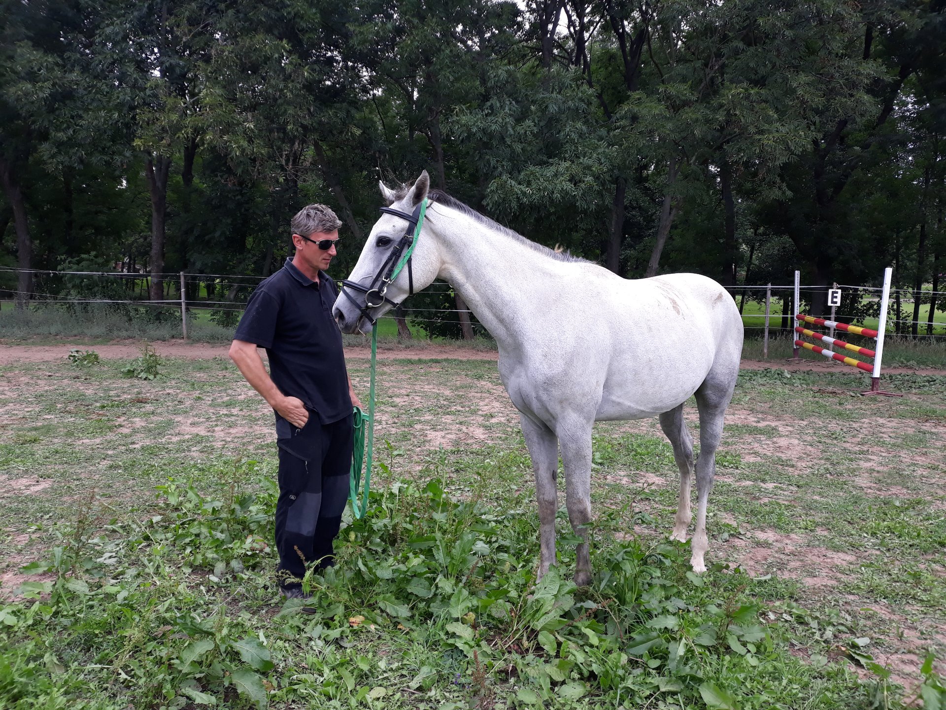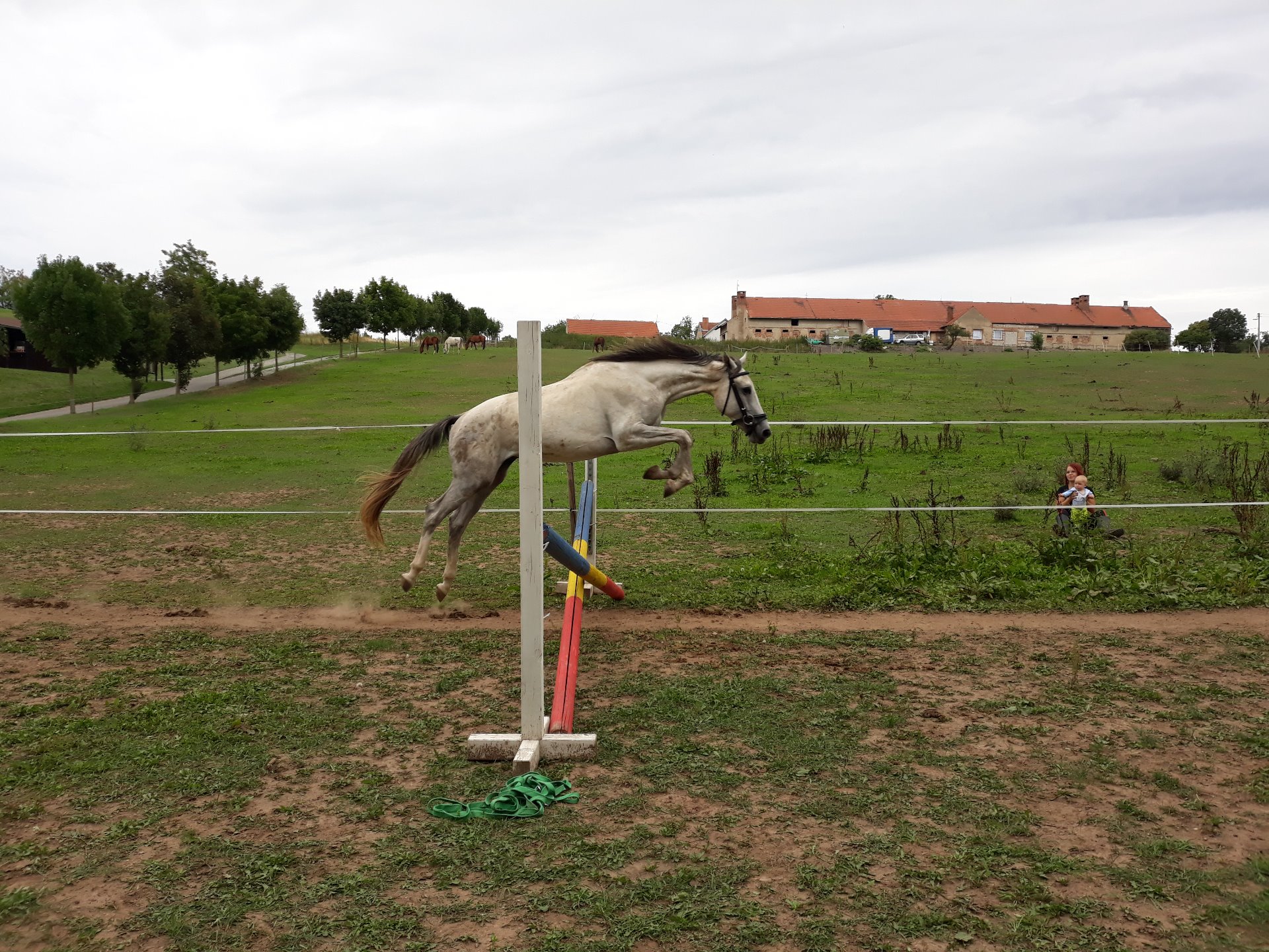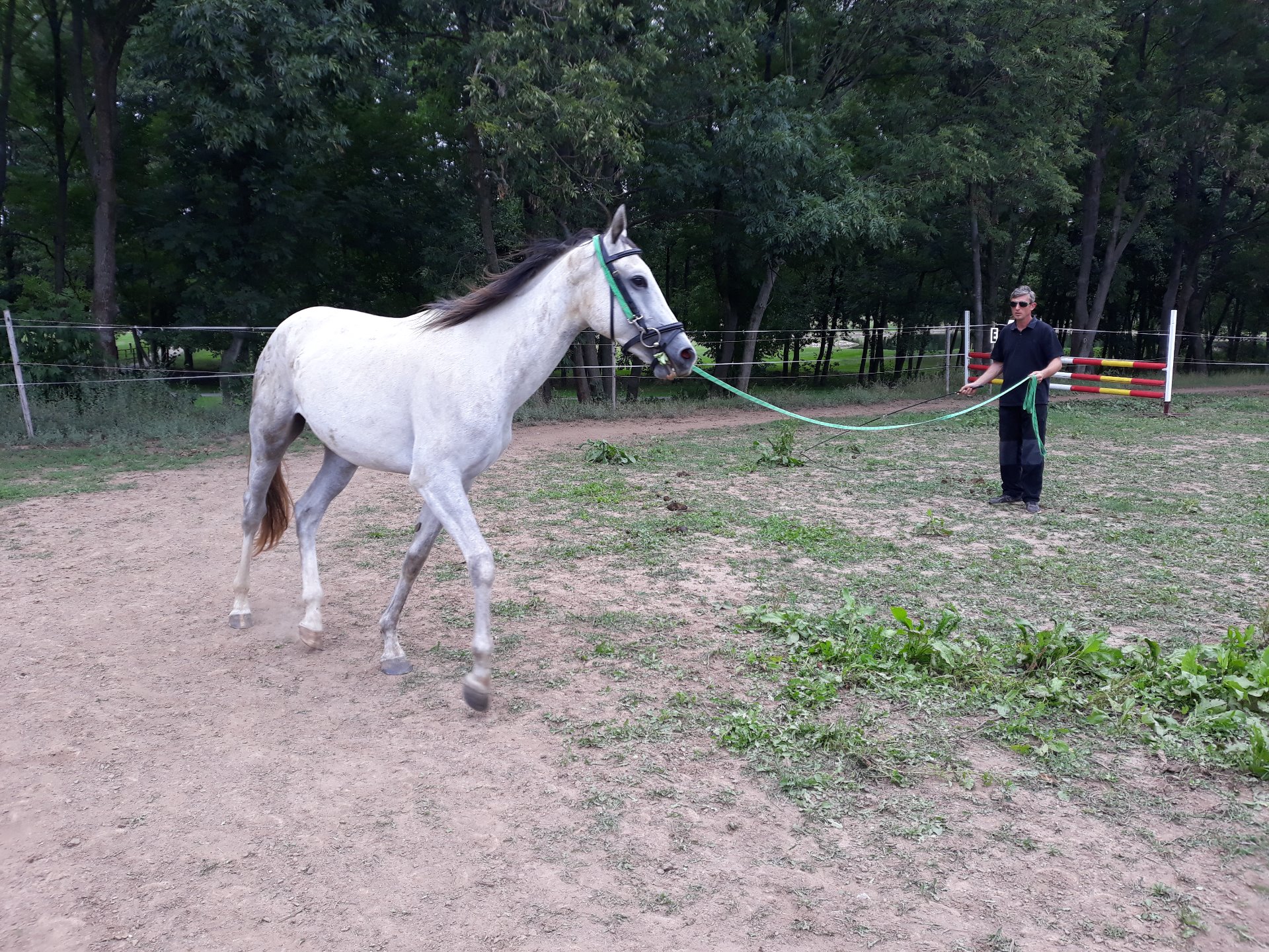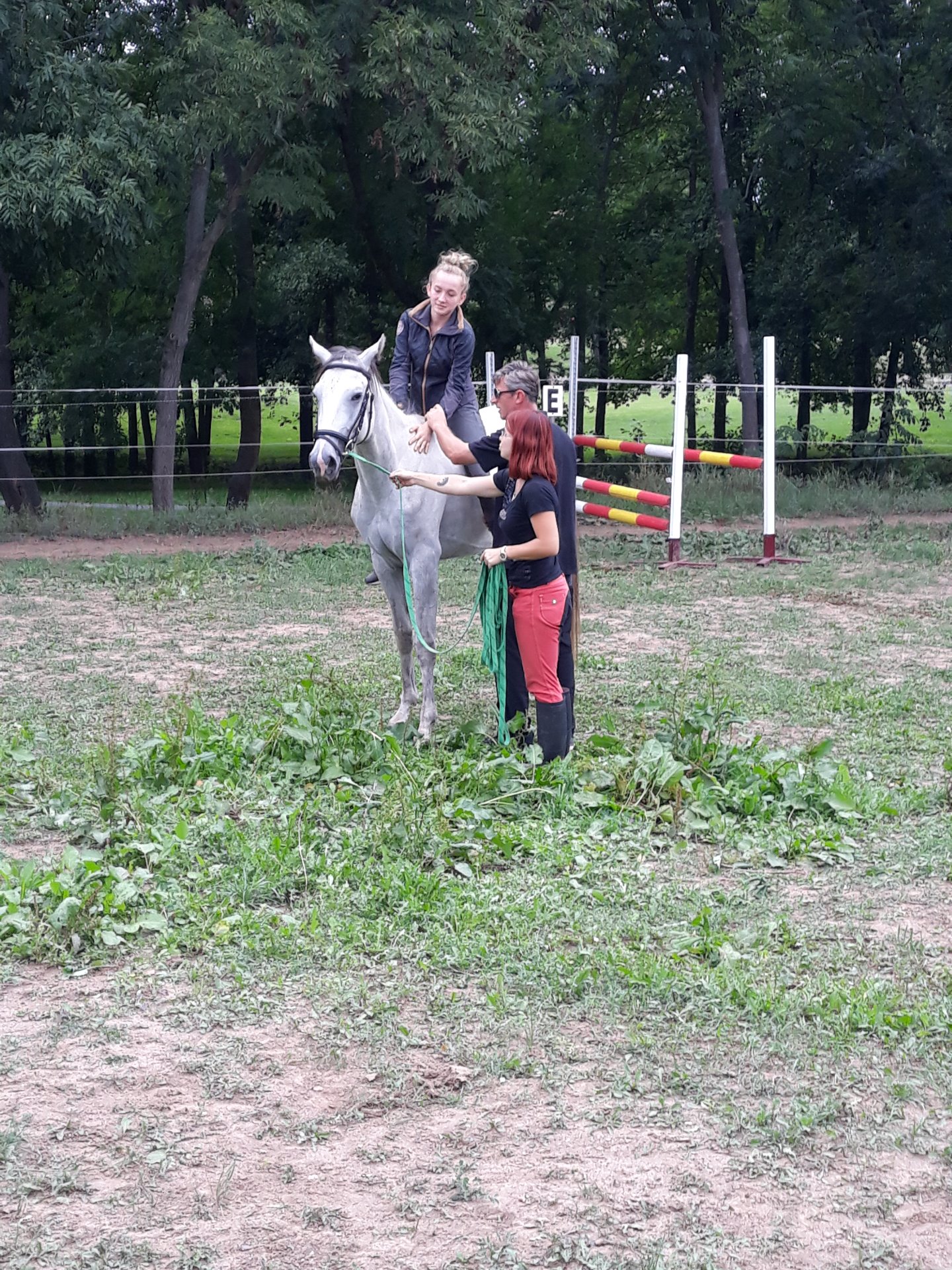 Příprava našeho hřebce Cool Man-H, po 1478 Cool Paradise, na obsedání. Na jeho hřbet si dnes odvážně poprvé sedla Andrea Dandová, která se o něho stará již od narození.